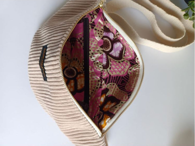 Un accessoire qui mélange élégance et originalité : le sac banane en velours côtelé d'AIGAN CREATION.